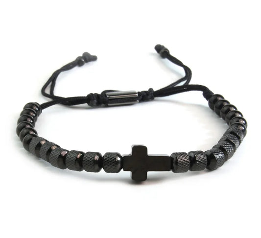 This bracelet by Melia Nae embodies strength, style, and refined craftsmanship. Handcrafted from high-quality stainless steel and finished in a triple-layer 18K gold plating, it offers lasting brilliance and resistance to tarnish. The design features a bold 1.4CM cross centerpiece, surrounded by a mix of textured and polished golden beadsmeasuring...