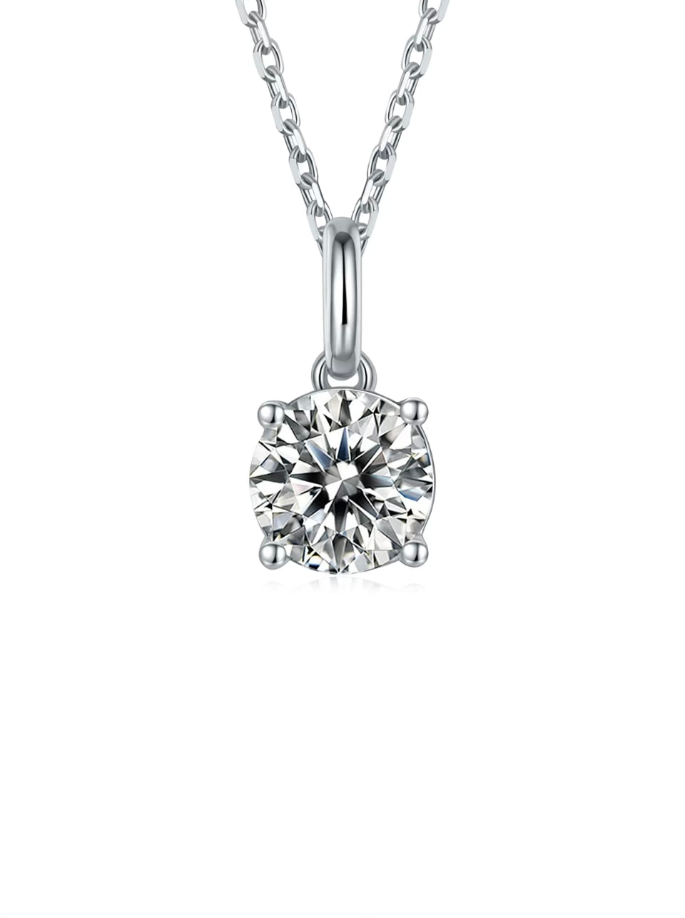 The necklace boasts a gorgeous 1ct moissanite stone that is set in 18ct white gold plated sterling silver. The solitaire setting allows the stone to take center stage, creating a stunning and eye-catching piece that will complement any outfit.