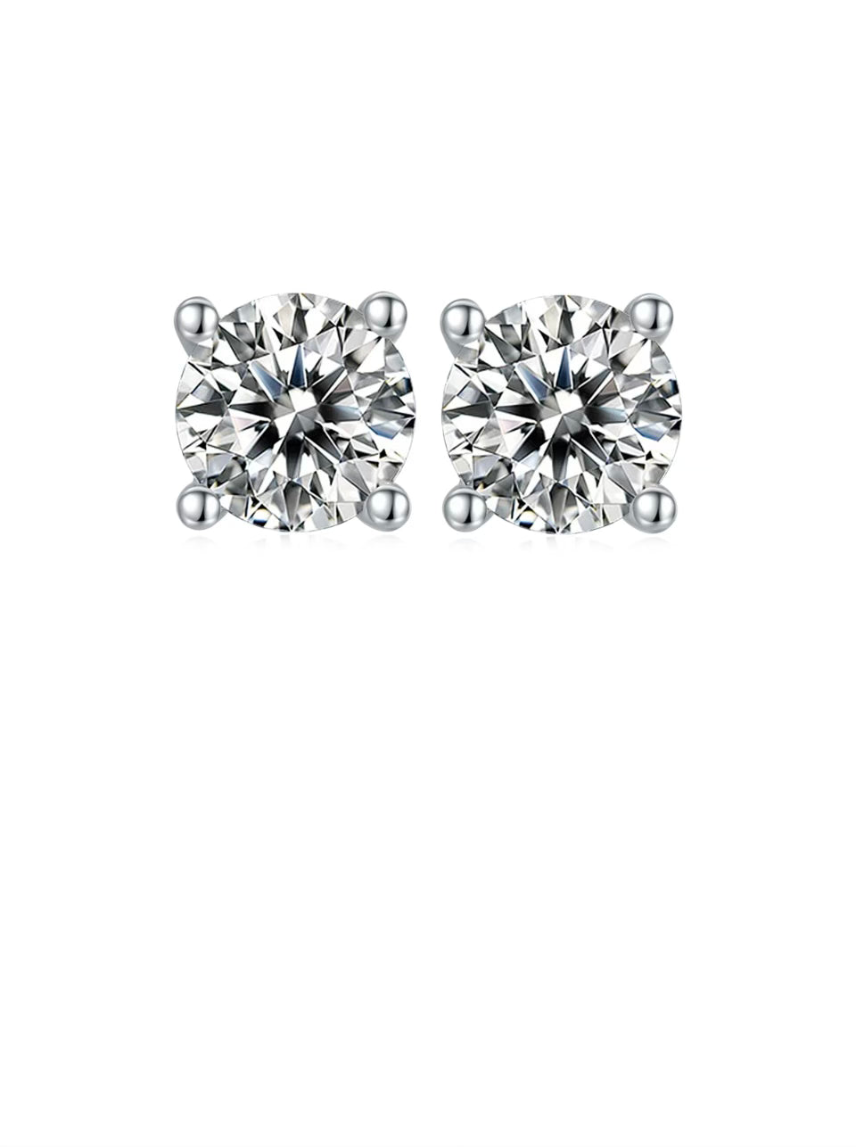 The earrings feature two 0.5CT moissanite stones, also set in 18ct white gold plated sterling silver. The smaller stones make these earrings a perfect complement to the necklace, adding a touch of sparkle and elegance to any ensemble.